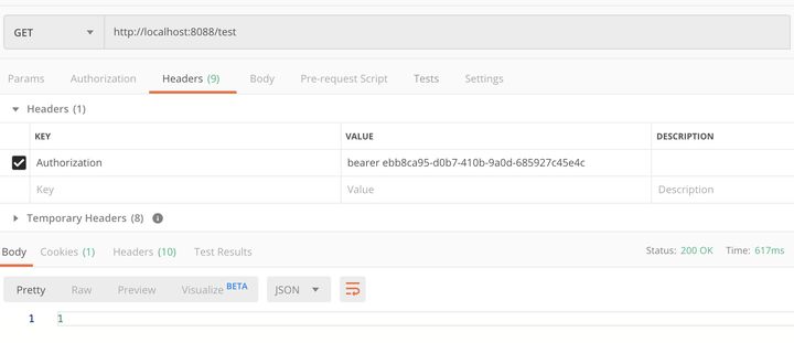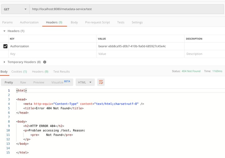 使用 Postman 进行测试,结果发现直接请求 http://localhost:8088/test 即 metadata-service 的地址,可以正常得到结果