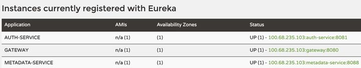 使用 Spring Cloud Eureka 搭建服务注册中心,使用 Zuul 搭建服务网关,一套比较传统的微服务架构。 服务注册中心的地址为 http://localhost:8888,Zuul 网关地址为 http://localhost:8080, 另外搭建一个服务名为 metadata-service 的服务,地址为 http://localhost:8088。